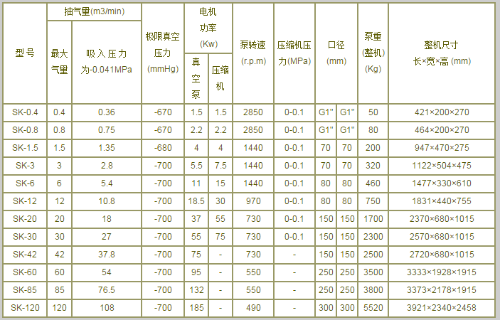 Sk系列水環(huán)式真空泵及壓縮機(jī)是用來(lái)抽吸或壓縮空氣和其它無(wú)腐蝕性、不溶于水、不含有固體顆粒的氣體,以便在密閉容器中形成真空和壓力。但吸入氣體允許混有少量液體。
